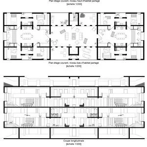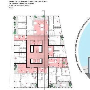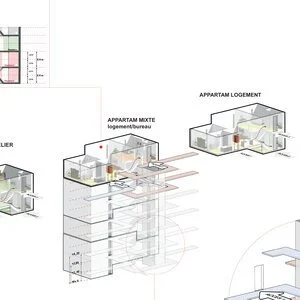 Le projet « PLU + S » d’Harold Chaveneau et Yuko Ohashi repose sur un principe de logements collectifs qui rend possible l’expression de la multiplicité des formes d’habitat. A la manière de la commercialisation et du découpage des plateaux de bureaux, ils proposent des plateformes à lotir qui puissent accueillir différentes typologies de logements, comme on le ferait d’une parcelle.
